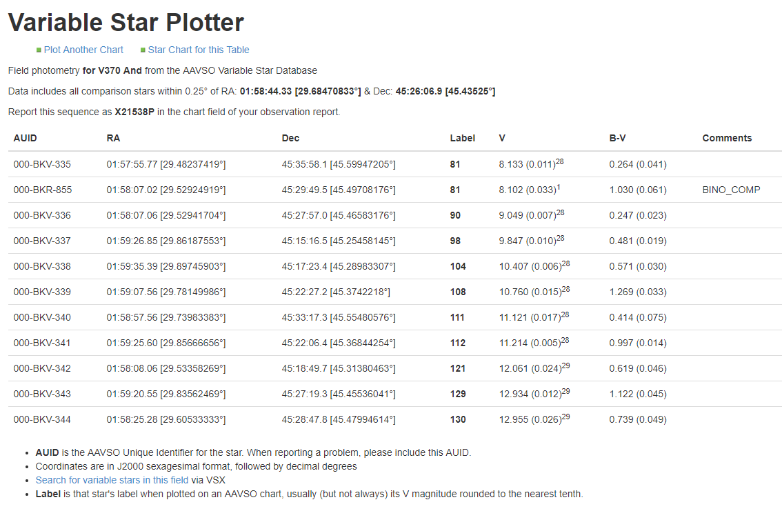 Or you can click on "Photometry Table for this Chart" when the chart appears.